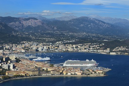 France, Corse-du-Sud (2A), Ajaccio, au premier plan la citadelle dans la vieille ville et le port (vue aérienne)