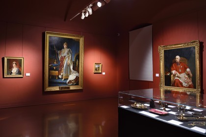 France, Corse-du-Sud (2A), Ajaccio, l’hôtel de ville, salon napoléonien restauré avec les tableaux représentant Napoléon en tenue de sacre signé Gérard (à gauche) et de Napoléon III signé Winter Halter (au centre)