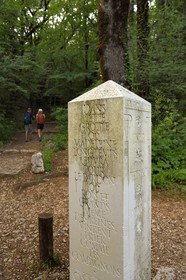 France, Var (83), Plan-d'Aups-Sainte-Baume, parc naturel régional de la Sainte-Baume, foret du Massif de la Sainte-Baume, selon la tradition légendaire des Compagnons du Devoir et du Tour de France, leur fondateur maître Jacques à son retour de la construction du temple de Salomon en 950 av. J.-C. se retire à la Sainte-Baume où il aurait été assassiné et enterré, le passage sur le massif est donc incontournable dans leur périple initiatique