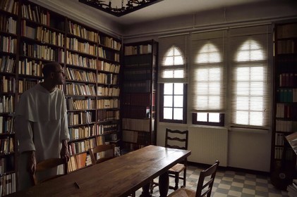 France, Var (83), France, Var (83), Plan-d'Aups-Sainte-Baume, parc naturel régional de la Sainte-Baume, massif de la Sainte-Baume, Frère Patrick-Marie Bozo, le prieur de la communauté des dominicains de la Sainte-Baume, dans la bibliothèque du couvent de la grotte sanctuaire de Sainte Marie-Madeleine
