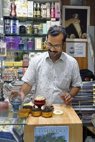 Sultanat d'Oman, Mascate, district Shati Al Qurm, Opera Galleria, luxueux centre commercial de l’Opéra Royal de Mascate, le restaurant Al Angham, homme portant le dishdasha (longue tunique) avec le khanjar omanais (poignard) et le turban appelé massar